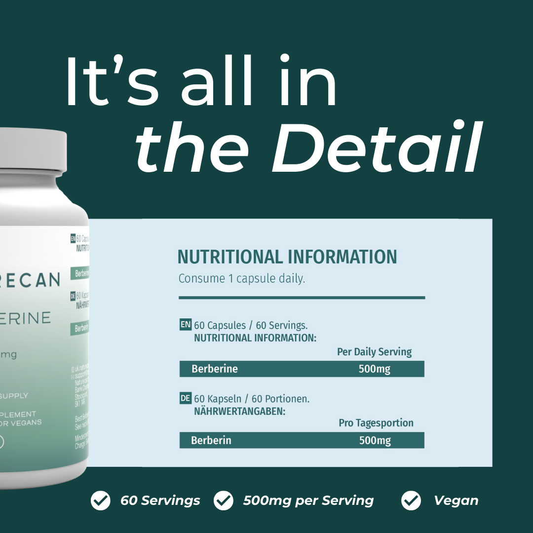 Berberine is a natural compound found in several plants, including the Berberis species and has been used for centuries in traditional medicine. It’s a bitter-tasting yellow substance that is typically made in capsule or tablet form for maximum benefits, without the bitter taste.